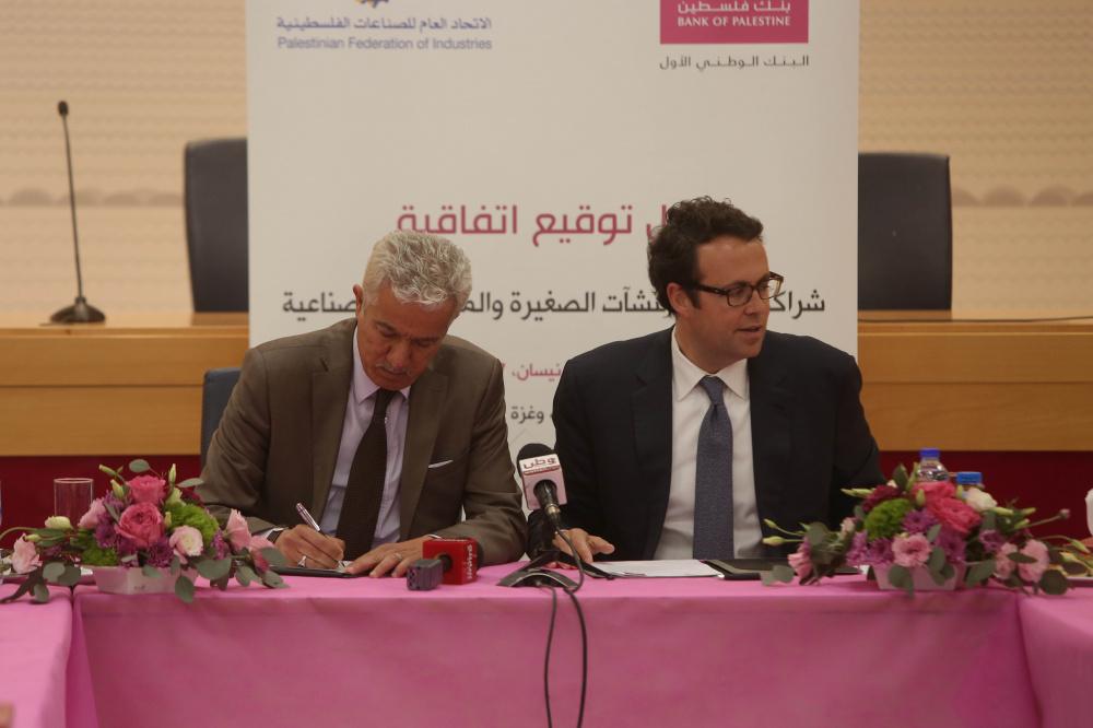 شبكة راية :حفل توقيع اتفاقية شراكة لدعم المنشآت الشغيرة والمتوسطة الصناعية بين بنك فلسطين والأتحاد العام للصناعات الفلسطينية