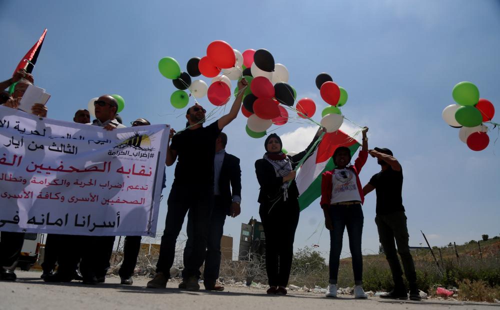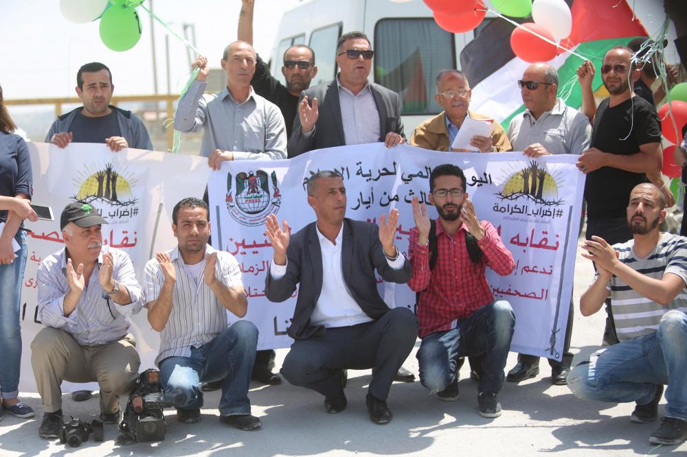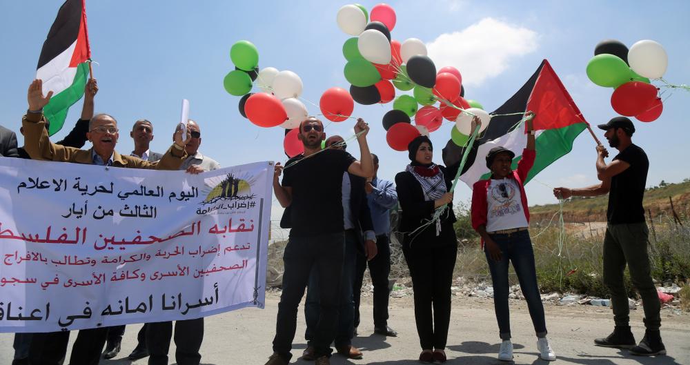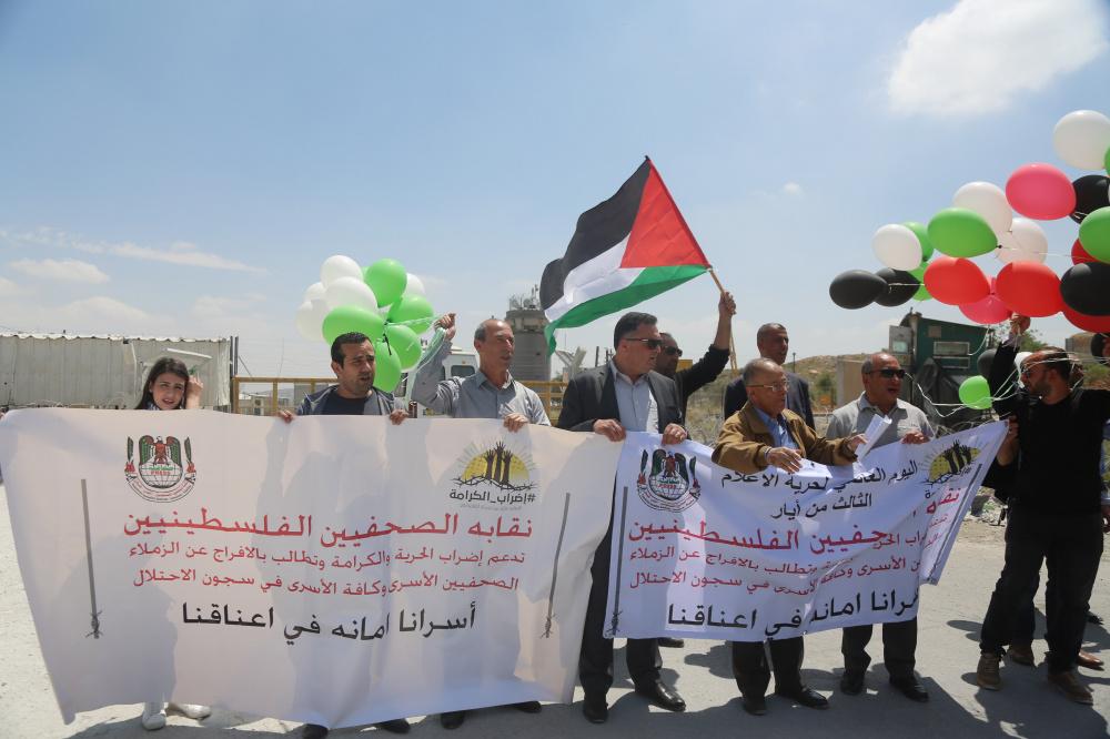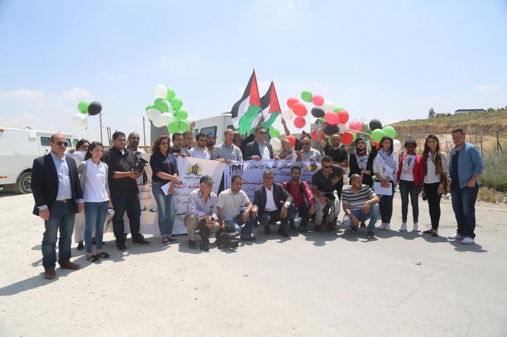 جنود الاحتلال يقعمون اعتصاماً سلمياً للصحافيين امام بوابة سجن عوفر في اليوم العالمي لحرية الصحافة