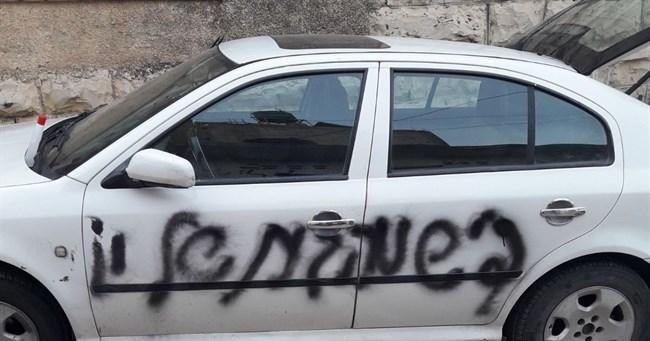 شعارات عنصرية واعطاب اطارات مركبات في نابلس
