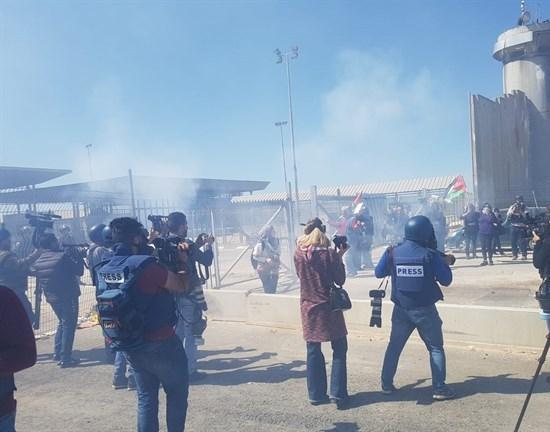 وانطلقت المسيرة من أمام مخيم قلنديا للاجئين باتجاه حاجز قلنديا، شمال مدينة القدس، وفور وصول المسيرة للحاجز أطلقت قوات الاحتلال قنابل الغاز المسيل للدموع، وقنابل الصوت تجاه المشاركين فيها ما أدى لإصابة عدد منهم بالاختناق.