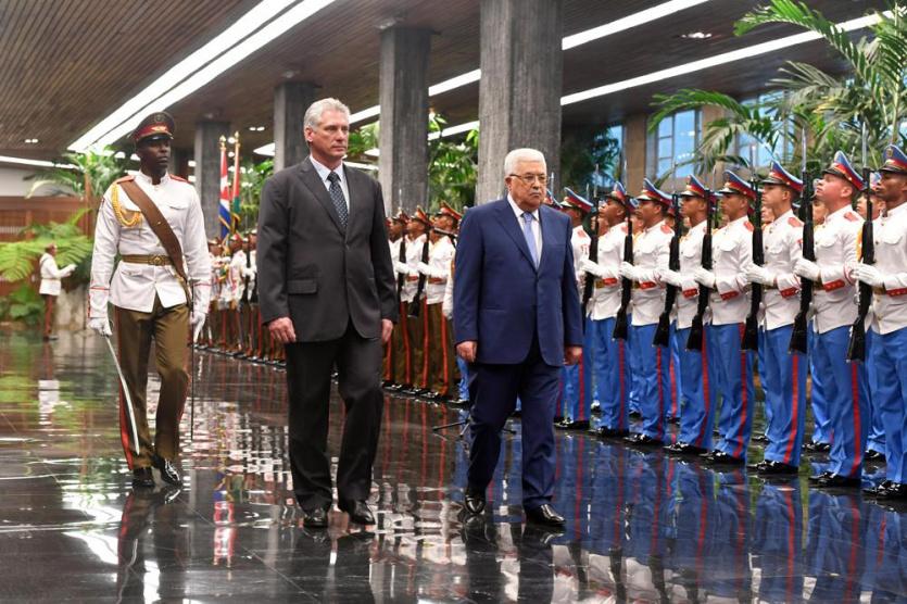 عقد الرئيس محمود عباس، اليوم السبت، جلسة مباحثات رسمية مع نظيره الكوبي ميغيل دياز كانيل، في القصر الجمهوري بالعاصمة هافانا في ثالث محطة من جولته بأميركا الجنوبية.