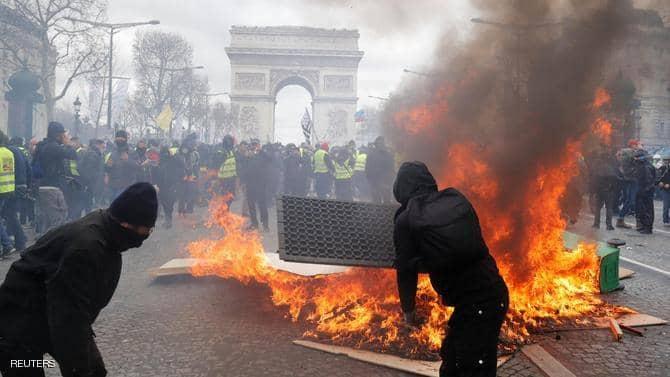 واشتبك متظاهرون من "السترات الصفراء" مع شرطة مكافحة الشغب بالقرب من قوس النصر، وقامو بتخريب متاجر فاخرة في احتجاجات السبت الثامنة عشرة على التوالي المناوئة لسياسات الرئيس إيمانويل ماكرون.