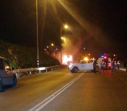اشتعال حافلة مستوطنين قرب بلدة جيت شرق قلقيلية