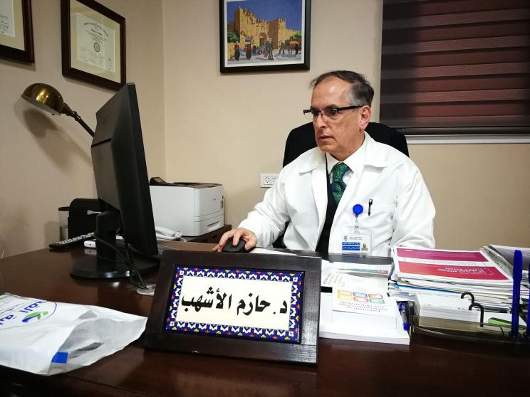 الطبيب حازم عبد الحفيظ الأشهب، رئيس قسم الباطني والجهاز الهضمي في مستشفى الأهلي بالخليل. "بعد إنتهاء دراستي الثانوية في مدرسة الحسين توجهت الى الجامعة الأردنية لدراسة الطب البشري فترة الثمانينيات ثم عدت وعملت سنتين في مستشفى المقاصد فترة إنتفاضة الأقصى الأولى" قال الأشهب.