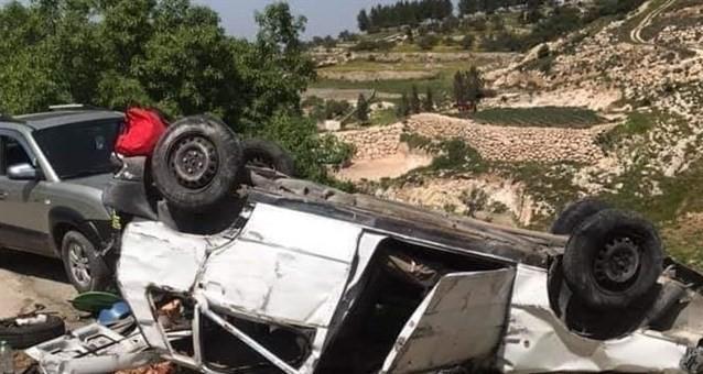 11 إصابة بحادث انقلاب مركبة غرب الخليل