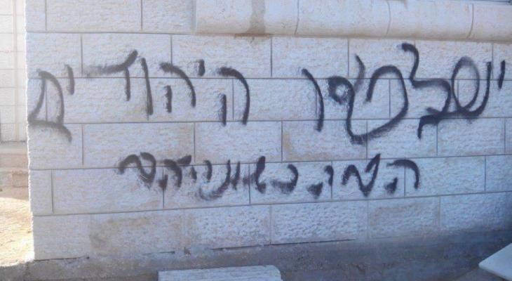 مستوطنون يخطون شعارات عنصرية في عين يبرود شرق رام الله