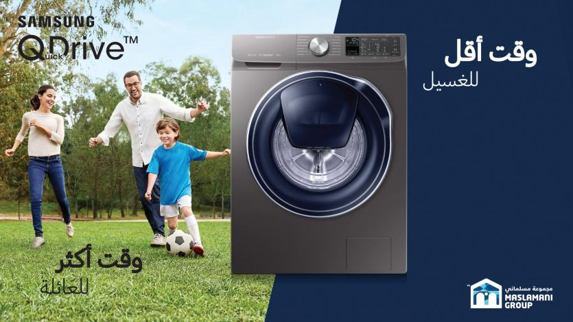 توفر مجموعة مسلماني غسالة سامسونج بتقنية QuickDrive الجديدة والأكثر تطوراً بحجم 9 كغم، صممت هذه الغسالة بطريقة تجعل حياتنا أسهل وأبسط، فتتيح لنا هذه الغسالة توفير الوقت والطاقة على حد سواء، من دون المساومة على الجودة أو الأداء، وبذلك تكون المهمة الأكثر كفاءة بالنسبة للكثير سهلة وسريعة وبخطوات أقل ونظافة فائقة، نظراً لأن الغسالة الجديدة سريعة، قوية، ذكية، ومتنوعة المهام.