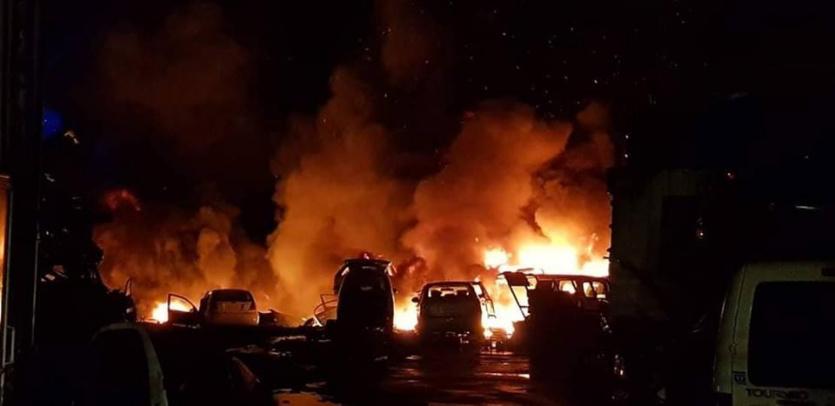 اندلاع حريق ضخم في "مشطب" للسيارات في برطعة غرب جنين