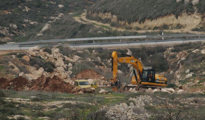 مستوطنون يجرفون أراضي جنوب نابلس لشق طريق استيطانية