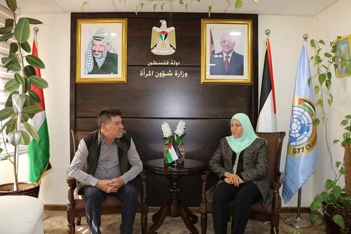 إلتقت الدكتورة أمال حمد وزيرة شؤون المرأة، اليوم الأحد، في مقر الوزارة، مع مدير عام مؤسسة الأكشن إيد إبراهيم بريغيث والوفد المرافق، لبحث سبل التمكين الإقتصادي للنساء ضمن رؤية الوزارة المعدة من اجل خلق تمكين النساء بمختلف المجالات الحياتية.