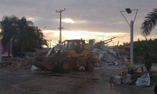 ووفرت الشرطة الحماية للجرافات التي قامت بهدم المبنى الذي يتواجد في مرحلة الإنشاء، حيث كان سيصبح مطعما.