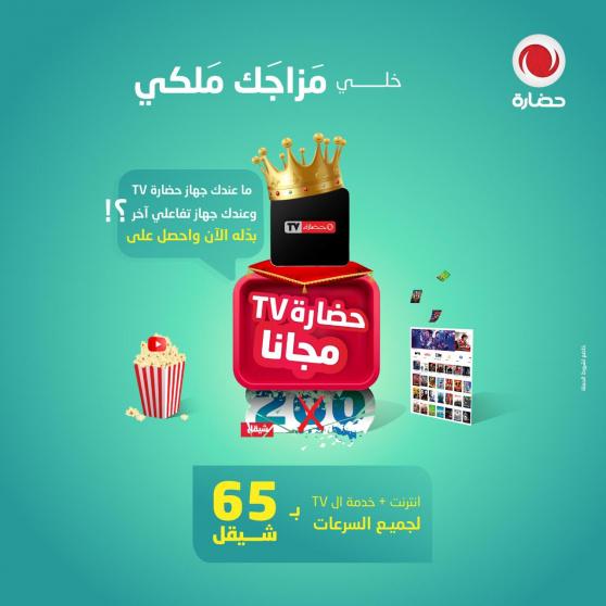 أطلقت شركة حضارة للاستثمار التكنولوجي وهي إحدى شركات مجموعة الإتصالات الفلسطينية حملة جديدة لخدمة التلفزيون التفاعلي تحت اسم " خلي مزاجك ملكي" ، استهدفت بها المشتركين الحاليين و الجدد والقادمين من مزود أخر. وتتضمن الحملة عرض مميز على سعر الإشتراك الشهري على باقات حضارة اكستريم الخاصة بحضارةTV بالإضافة الى جهاز حضارة TV مجاناً.