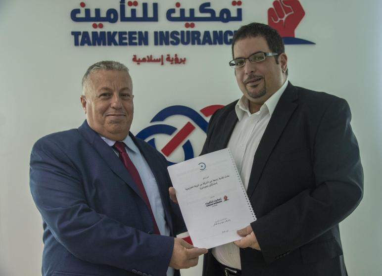 استلمت شركة تمكين للتأمين ممثلة بالسيد محمد الريماوي مديرها العام نتائج دراسة سوقية خاصة بالتغذية الراجعة عن الأداء من مشتركيها ومورديها والتي نفذت من خلال شركة الناشر للدعاية والاعلان بالتعاون مع الباحث المتخصص جاك رباح، اعتماداً على معايير البحث العلمي.