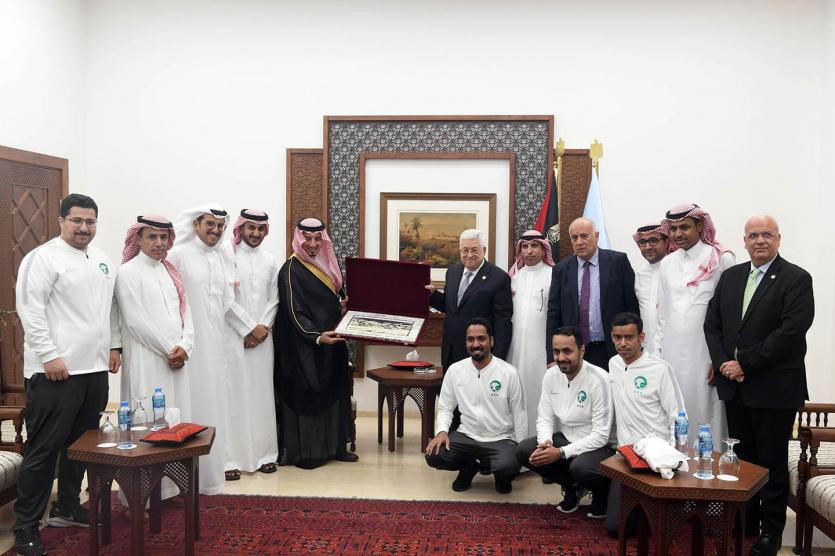 عبر رئيس دولة فلسطين محمود عباس، عن فخره واعتزازه بقدوم المنتخب السعودي لكرة القدم إلى فلسطين، مؤكدا انه يجسد العلاقة التاريخية بين فلســطين والمملكة العربية السعودية.