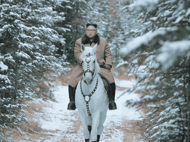 مجموعة لقطات غير معتادة نشرتها وكالة أنباء كوريا الشمالية الرسمية، يظهر فيها زعيم البلاد كيم جونغ أون وهو يتسلق قمة جبلية تكسوها الثلوج، على ظهر فرس أبيض.