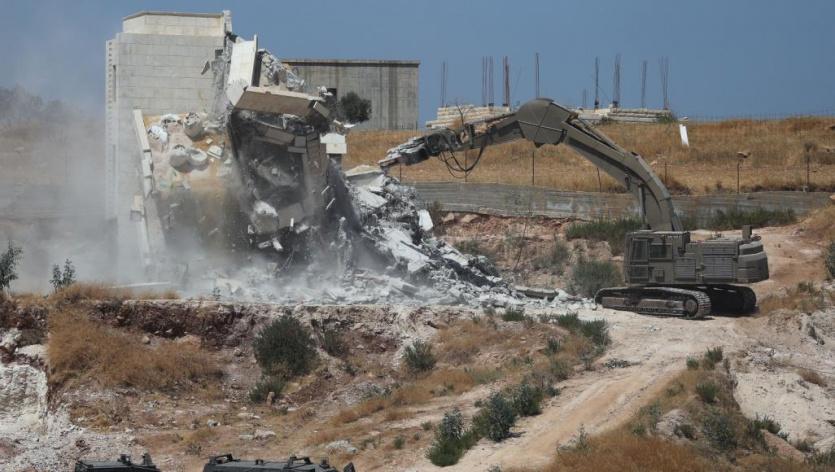 وأجبرت بلدية الاحتلال المواطن لؤي عبيد على هدم منزله بيده وهو قيد الإنشاء.