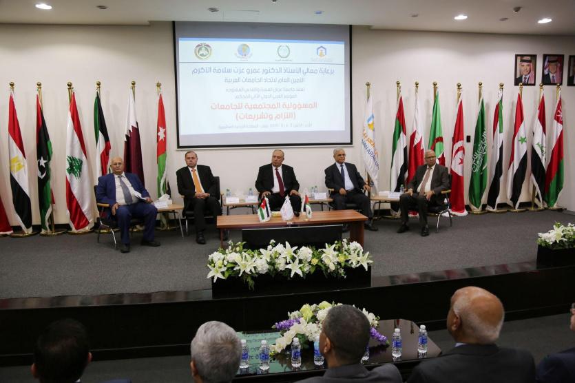 افتتحت جامعتا "القدس المفتوحة" و"عمان العربية"، يوم الأحد الموافق 3-11-2019م، المؤتمر الدولي الثاني المحكم "المسؤولية المجتمعة للجامعات.. التزام وتشريعات"، وذلك في حرم جامعة عمان العربية، وبرعاية معالي الأمين العام لاتحاد الجامعات العربية أ. د. عمرو عزت سلامة.