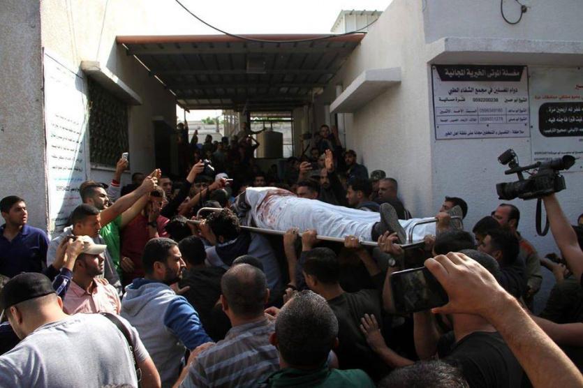 وصل شهيدان الى مستشفى النجار جراء التصعيد الاسرائيلي والقصف على حي النصر في مدينة رفح.