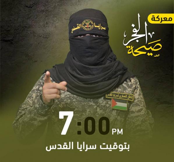 قال الناطق باسم سرايا القدس الجناح العسكري لحركة الجهاد الإسلامي إن سرايا القدس تتحدى رئيس الوزراء الإسرائيلي بنيامين نتنياهو وفريقه الأمني الذي تباهى متفاخراً باغتيال الشهيد بهاء أبو العطا أن يمتلك الجرأة ليسمح لرقابته العسكرية أن تقوم بالكشف عن أسماء وصور القواعد العسكرية والإستراتيجية التي وصلت إليها نيران وحداتنا الصاروخية.