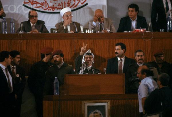 ففي الخامس عشر من تشرين الثاني عام 1988، أعلن الراحل عرفات، من امام دورة المجلس الوطني الفلسطيني، المنعقدة في قاعة قصر الصنوبر في العاصمة الجزائرية الجزائر، استقلال فلسطين.