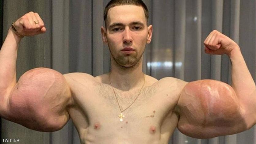 وانتشرت صور غريبة للاعب كمال الأجسام، الذي يظهر بجسد نحيل وعضلات ضخمة بشكل غير طبيعي أعلى الذراعين.