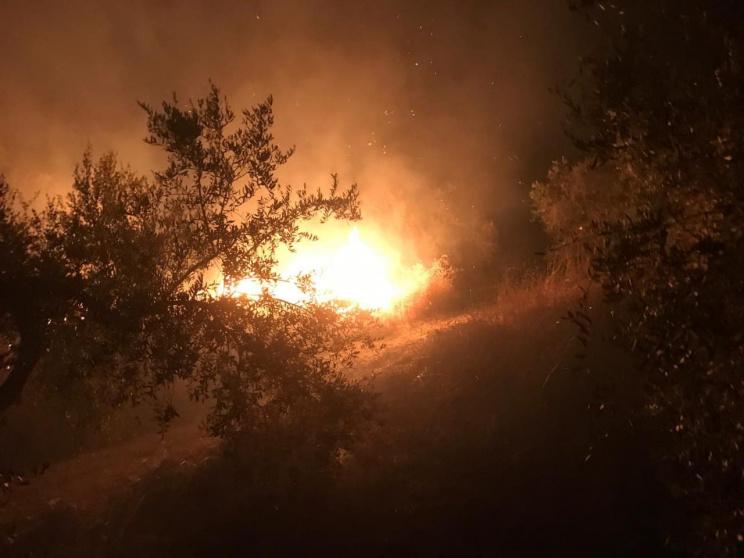 مستوطنون يضرمون النار بأشجار زيتون في سبسطية