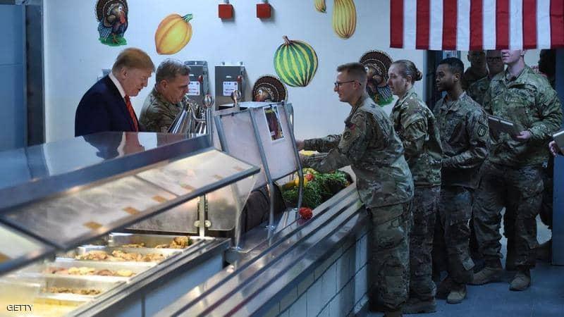 بالفيديو.. ترامب يقدم الطعام للجنود في أفغانستان