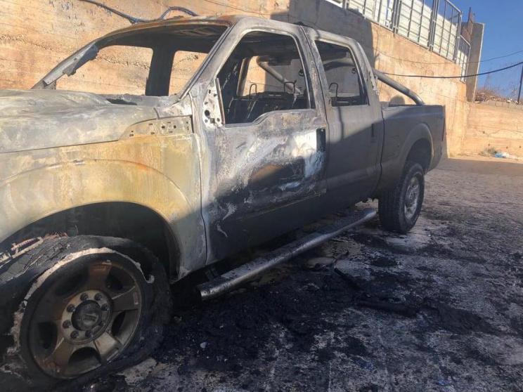وافاد شهود عيان ان مستوطنين تسللوا لقرية فجر اليوم وأحرقو مركبة وخطوا شعارات عنصرية.