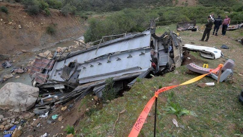 ولقي 26 تونسيا مصرعهم وأصيب 17 آخرون، الأحد، من جراء سقوط حافلة في واد بمنطقة عين السنوسي الجبلية في شمال غربي تونس.
