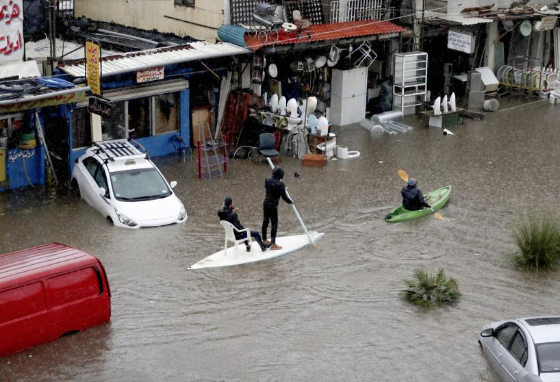 الأمطار تغرق لبنان ومواطنون في زوارق!