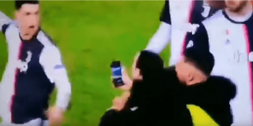 أحد المهووسين باللاعب كريستيانو رونالدو، مهاجم نادي يوفنتوس الإيطالي، جعله يتصرف أمس الأربعاء، وكأنه يتعرض لاعتداء مسلح، فقد رغب المشجع بالتقاط صورة "سيلفي" معه بعد فوز يوفنتوس بثنائية نظيفة على Bayer Leverkusen الألماني، بإطار فعاليات الجولة السادسة والأخيرة من دور المجموعات من بطولة دوري أبطال أوروبا.