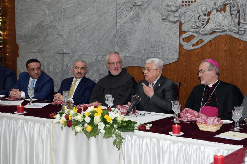 شارك الرئيس محمود عباس، مساء اليوم الثلاثاء، في عشاء عيد الميلاد المجيد في دير الفرنسيسكان في مدينة بيت لحم، للكنائس المسيحية، التي تسير حسب التقويم الغربي.