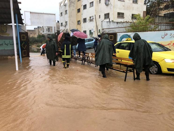 وتمثلت هذه التدخلات بتصريف المياه في خمس حالات وازالة اجسام متساقطة بسبب الرياح في تسع حالات والتعامل مع حادثي سير نتج عنها ثلاث اصابات وحرائق منزلين في جنين وبيت لحم نتج عنها اصابتين بحالات اختناق.