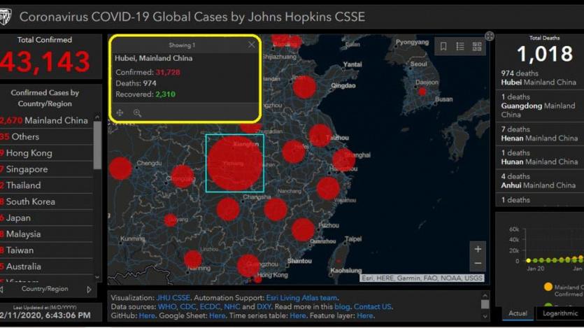 صُمم هذا الموقع من قبل باحثين في جامعة (جونز هوبكنز) Johns Hopkins الأميركية، ويقوم بسحب البيانات من موقع منظمة الصحة العالمية، وموقع مراكز السيطرة على الأمراض والوقاية منها (CDC)، وغيرها من المصادر مع خرائط نظم المعلومات الجغرافية لرسم خريطة لانتشار الفيروس مُحدثة لحظيا من أجل مكافحة ظهور المعلومات الخاطئة.