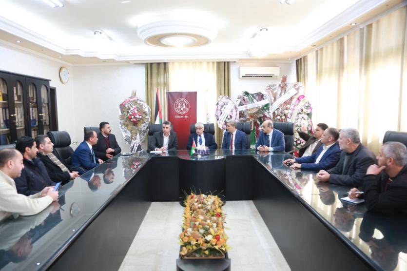 وكان في استقبال الوفد إلى جانب رئيس الجامعة، الدكتور مازن حمادة نائب رئيس الجامعة للشئون الإدارية والمالية، والدكتور عبد ربه العنزي عميد شئون الطلبة، كما حضر اللقاء الأستاذ الدكتور علي النجار عميد المعاهد الأزهرية في فلسطين.