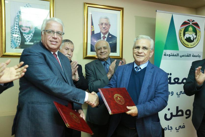 ووقع الاتفاقية عن جامعة القدس المفتوحة رئيسها أ. د. يونس عمرو، وعن جامعة بوليتكنك فلسطين رئيسها أ. د. عماد الدين الخطيب، وذلك في مكتب رئيس جامعة القدس المفتوحة برام الله.