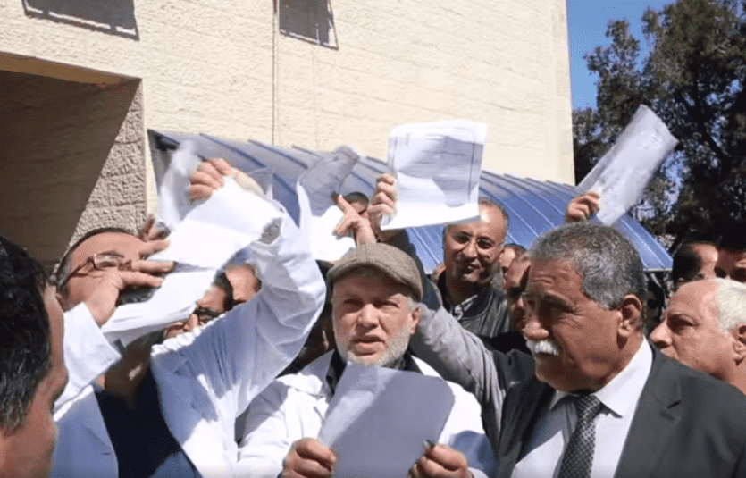 الاطباء يعتصمون أمام نقابتهم برام الله