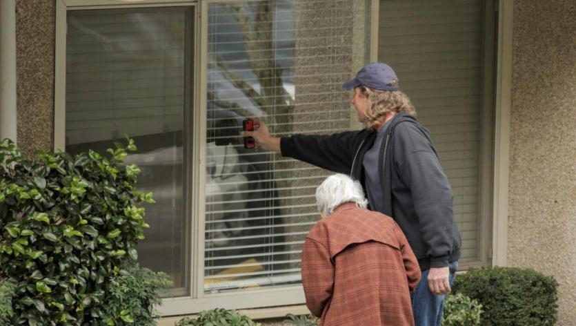 ينظر الأميركيون هذه الأيام لصورة جين كامبل وزوجته دوروثي بحزن وإعجاب وهما يحاولان التحدث لبعضهما البعض، حيث يرقد الزوج في الحجر الصحي بمركز "لايف كير" في كيركلاند بولاية واشنطن لإصابته بفيروس كورونا المستجد (كوفيد-19).