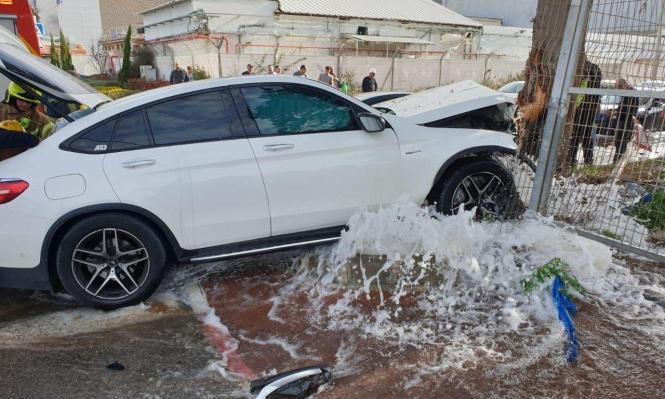 واصطدمت سيارة بصنبور إطفاء في الشارع إذ تدفقت كميات كبيرة من المياه إلى الشارع، وتم إبلاغ البلدية بالحاصل.