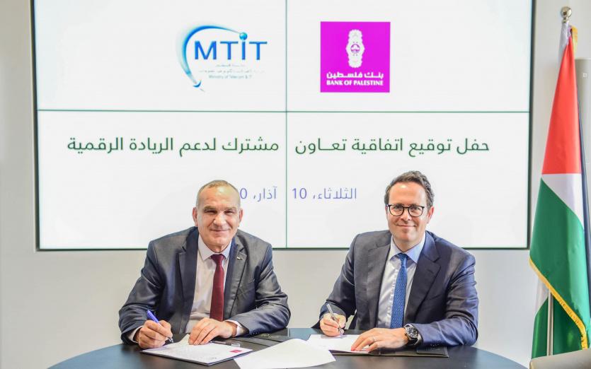 وزارة الاتصالات وبنك فلسطين يوقعان مذكرة تفاهم لدعم الريادة الرقمية