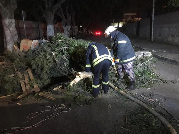 وقال مدير دائرة العلاقات العامة والإعلام في الجهاز نائل العزة، اليوم الجمعة، إن 70% من الحالات التي تعاملت طواقم الدفاع المدني معها، كانت إزالة أجسام وعوائق سقطت بفعل قوة الرياح، لافتا إلى أن أعلى نسبة حوادث كانت في طولكرم، حيث بلغت 51 تدخلا منها 48 إزالة أجسام متطايرة وآيلة للسقوط، ثم قلقيلية بمعدل 40 تدخلا منها 32 ازالة اجسام وعوائق، يليها رام الله بـ36 تدخلا منها 28 ازالة اعمدة واشجار وعوائق، وجنين بـ29 من حرائق وحوادث وازالة عوائق، وسلفيت 21 تدخلا، و29 حالة تدخلا في بقية المحافظات.