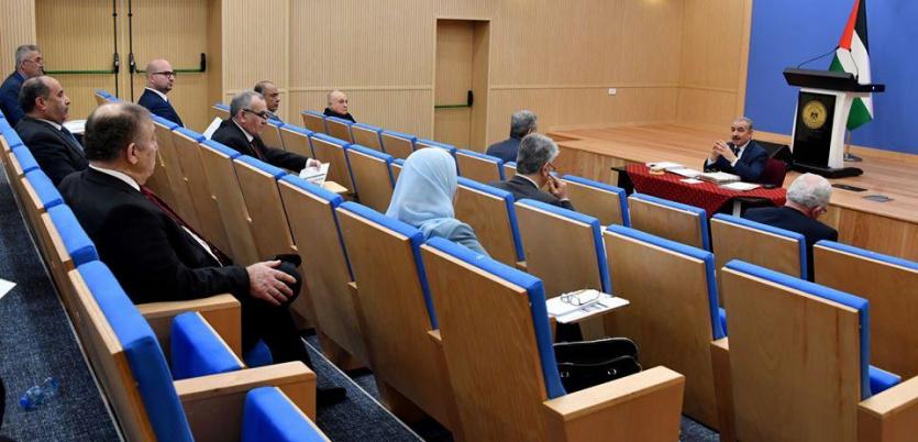 استمع مجلس الوزراء في مستهل الجلسة الأسبوعية، التي عقدت في رام الله اليوم الاثنين، إلى تقرير مفصل من رئيس الوزراء حول إجراءات الطوارئ والتدابير الوقائية المتعلقة بحماية الناس والحفاظ على حياتهم، والمتمثلة بتقييد الحركة بين المحافظات، وداخلها، وتقديم إجابات على أسئلة المواطنين واستفساراتهم حول تلك الإجراءات، والاستثناءات المتعلقة بمن يقومون بتقديم الخدمات للمواطنين، من ماء، وكهرباء، ومحروقات، وغيرها من الخدمات الحيوية الأخرى، حيث تم تفويض الوزراء بتقييم احتياجاتهم للكوادر البشرية الضرورية، وبالحد الأدنى لإدارة وزاراتهم خلال فترة الطوارئ.