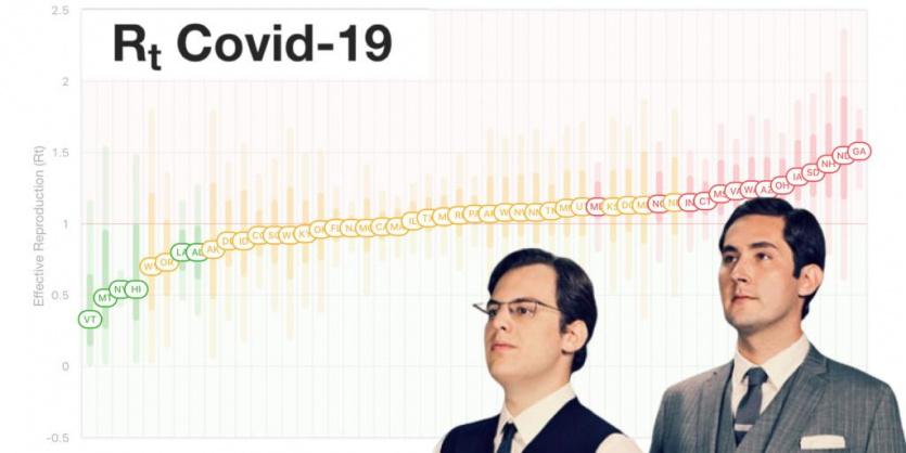 ووفقًا لموقع RT.live، تأتي البيانات من مشروع Covid Tracking Project، وهي منظمة متطوعة بدأت بالمساعدة في جمع وتصور معدلات الاختبار والعدوى لفيروس (كوفيد-19).