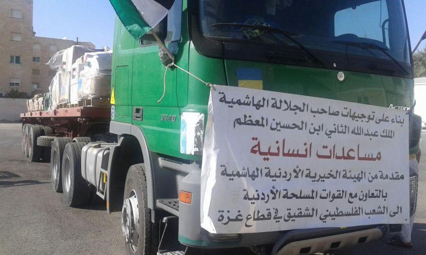 سيرت الهيئة الخيرية الأردنية الهاشمية قافلة مساعدات إنسانية، بالتنسيق مع القوات المسلحة الأردنية – الجيش العربي، إلى قطاع غزة.