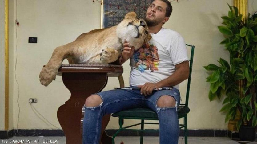 نشر مدرب الأسود المصري أشرف الحلو مقطعا مصورا على حسابه في "إنستغرام" وهو يقوم بتدريب لبؤة داخل شقته في القاهرة.