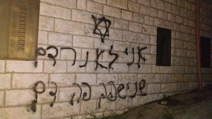 وأوضح شهود عيان، أن مستوطنين اقتحموا البلدة وخطوا عبارات عنصرية باللغة العبرية منها "أنا لا ابرح حتى يُسفك الدم هنا"، و"حياة جنودنا أهم من حياة اعدائنا"، قبل أن يكتشف الأهالي أمرهم ويلوذوا بالفرار .
