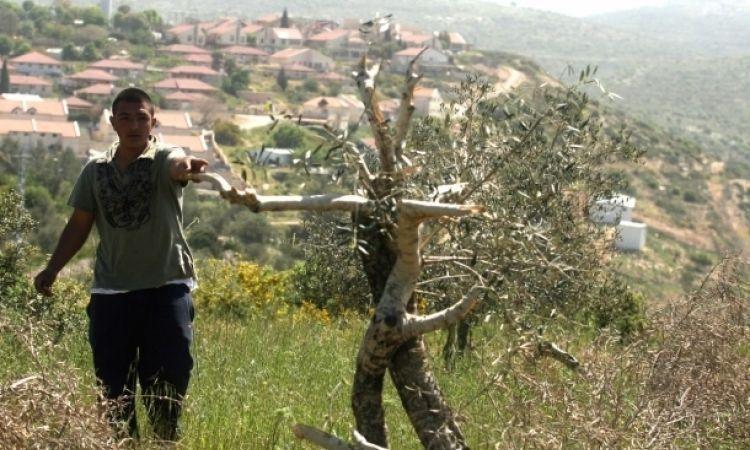مستوطنون يقطعون عشرات أشجار الزيتون