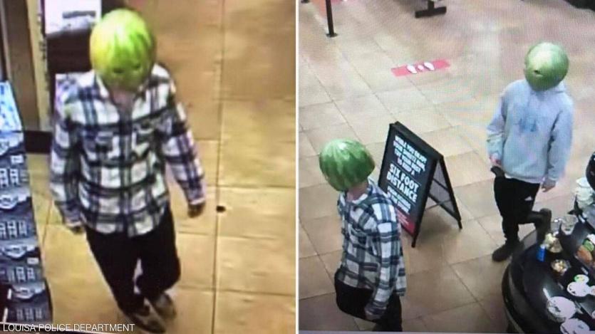لكن واقعة السرقة لا تبدو بتلك البساطة للوهلة الأولى، إذ ابتكر المتهمان طريقة غير مألوفة للتخفي وخداع كاميرات المراقبة، وارتديا ثمرتي بطيخ مجوفتين، فيما فتحا فيهما فتحات صغيرة للرؤية.