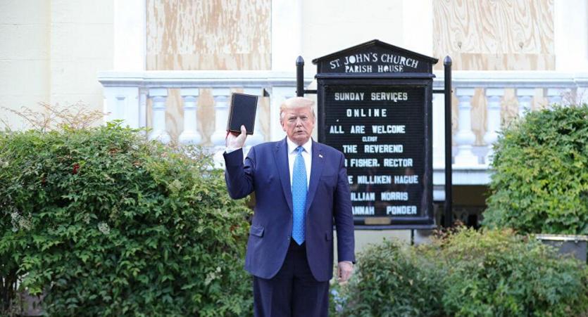 وكان ترامب يتحدث في خلفية الفيديو الذي يضم صورا ولقطات لمسيرات احتجاج وأحداث عنف بعد موت فلويد إثر إلقاء القبض عليه بطريقة عنيفة.