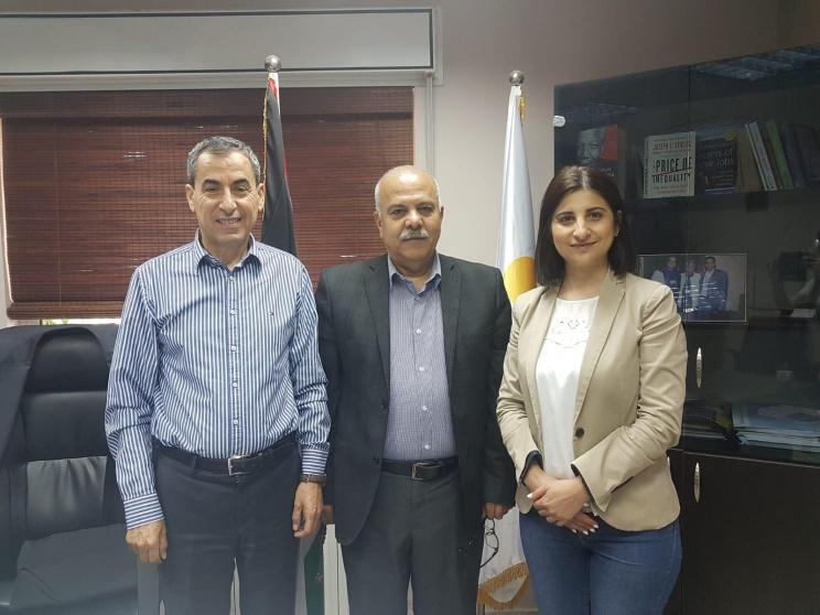 في إطار تبادل الزيارات لفتح آفاق تعاون مشترك ، استقبل مدير عام مؤسسة فاتن انور الجيوسي في مقر الادارة العامة برام الله رئيس جمعية الصداقة الفلسطينية الكندية لدى فلسطين المهندس أكرم العايدي ، الذي ثمّن الدور الريادي والمهني للمؤسسة واحتلالها لمراكز متقدمة في قطاع التمويل الصغير على مستوى فلسطين والعالم .